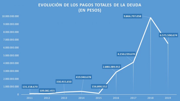 Es necesario efectuar una preocupante salvedad. Desde el 2011 y hasta el 2019 la provincia pagó por amortizaciones y disminución de otros pasivos la impactante cifra de 24.616 millones de pesos. Al tipo de cambio oficial actual, Chubut aún debe pagar un total de 64.540 millones de pesos por el capital y los intereses, entre el acumulado del 2020 y hasta el 2026.