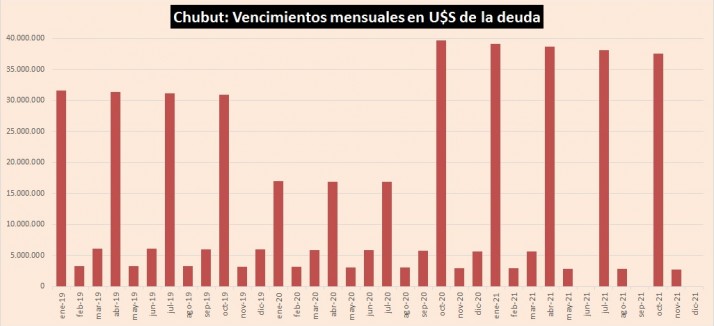 Los elevados vencimientos trimestrales se irán repitiendo en los años subsiguientes pero con cargas aún mayores. El ahogo financiero gubernamental obliga al gobernador y su equipo económico a apurar la habilitación legislativa para renegociar la deuda chubutense.